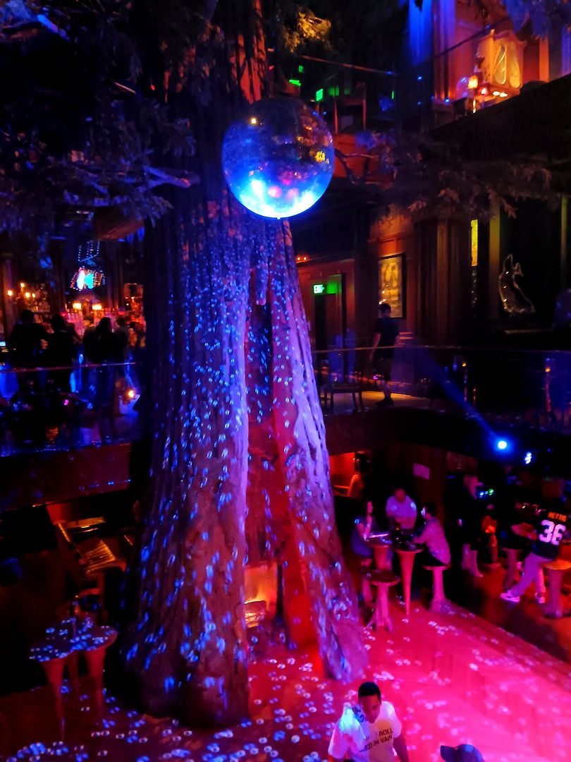 Everything there is big and bold, from the (fake) giant redwood tree in the middle of the dining room...