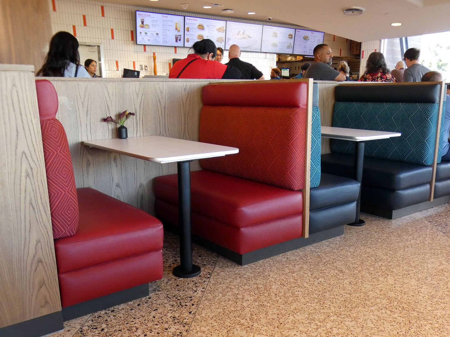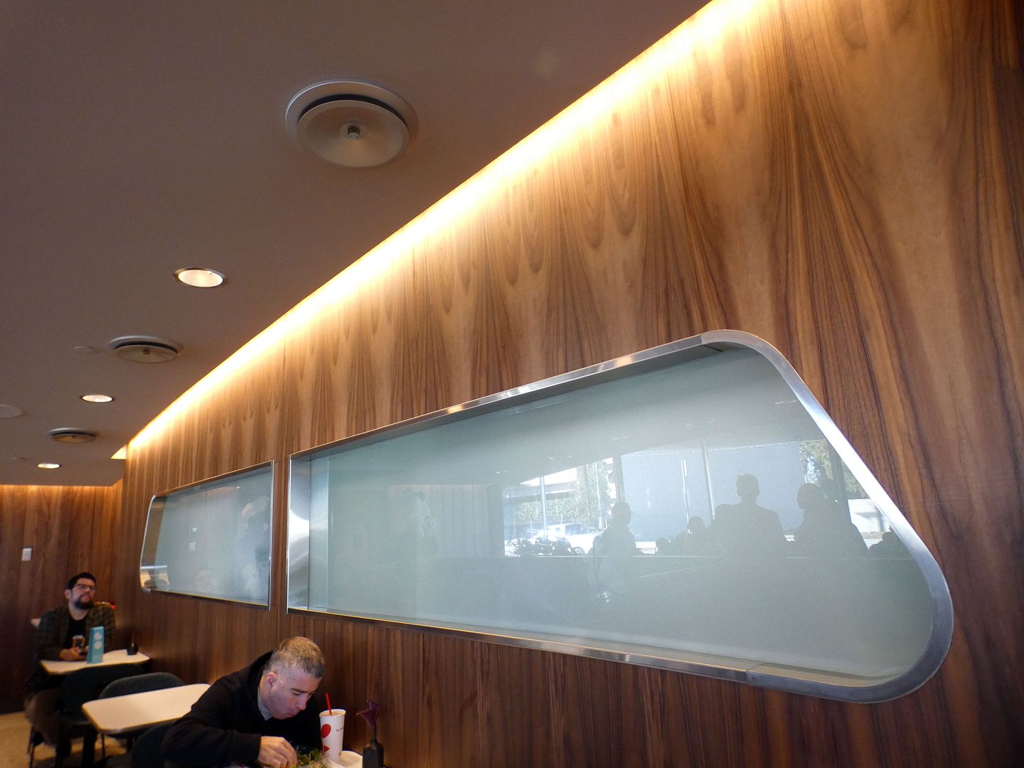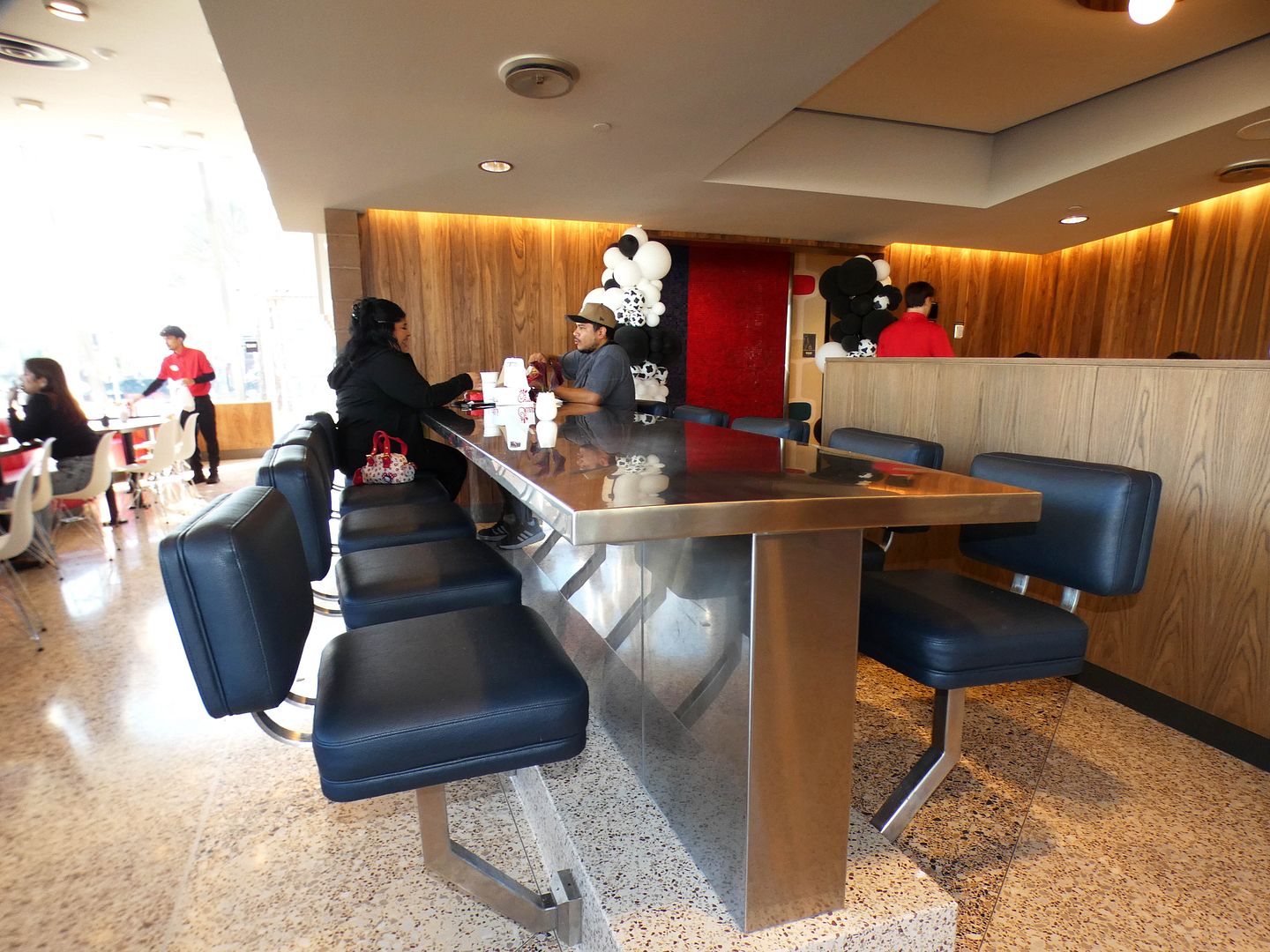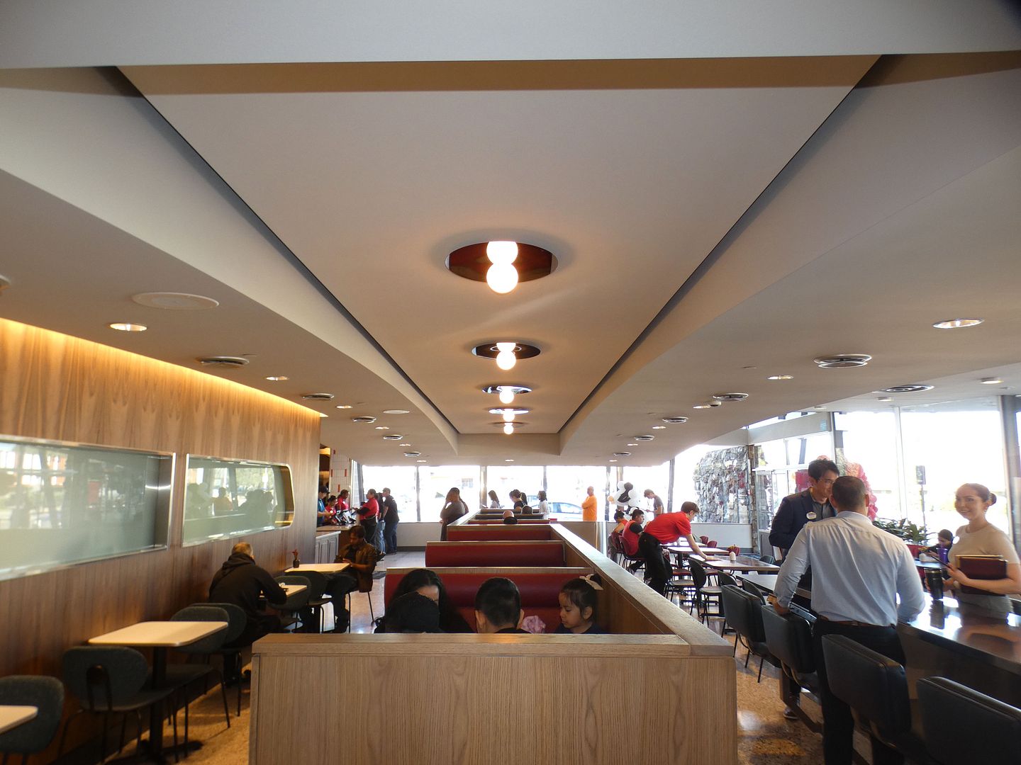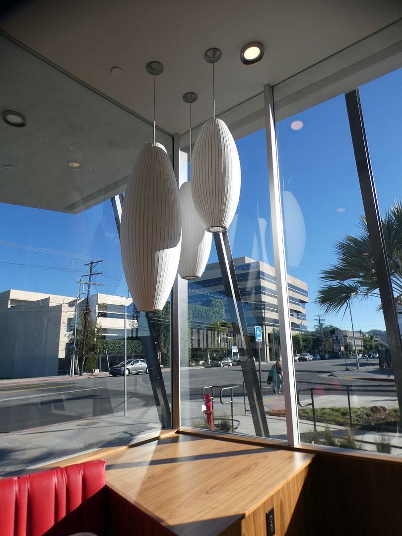 Most of the interiors, however, are new—although Chick-Fil-A has attempted to recreate what was perhaps Helen Fong's original vision for the decor, aided by the original construction drawings and the know-how of architect and historian Alan Hess. The Herman Miller/Nelson Bubble Lamps hanging in the corner window are a nice touch.