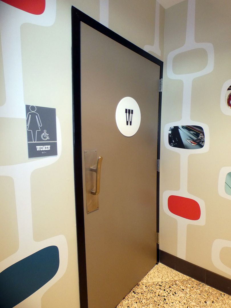 ...but the entire restroom area has been redone in tribute to the car culture that characterized Van Nuys Boulevard, particularly in the 1950s and 1960s (an important nod, especially since the planned drive-thru at this location did not come to fruition).