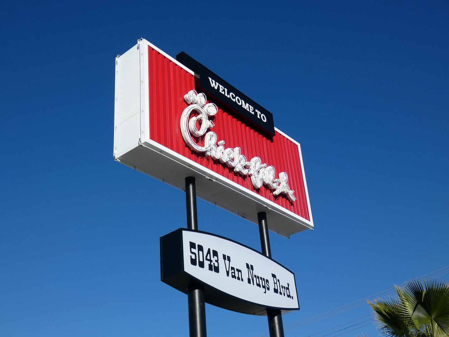 Fortunately, the operators of the fast food chicken joint franchise wanted to retain much of the restaurant's history, right down to the massive pylon sign with bona fide neon tubing.