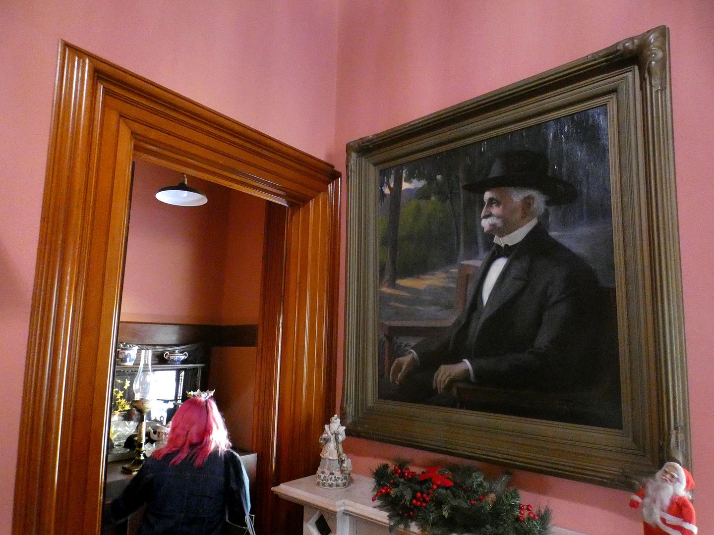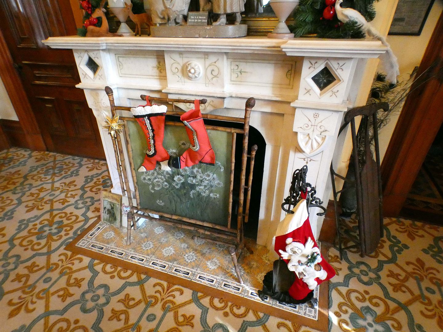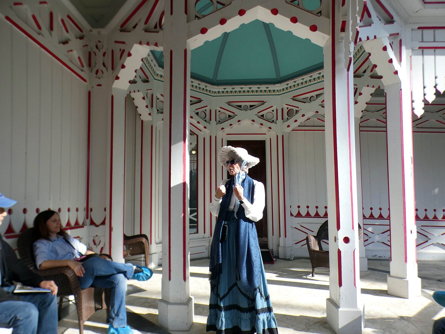 A docent greeted us at the front entrance, whose canopy is painted blue to mimic the sky and whose mirrored wall helped guests shake off the dust of their rugged trip to the Victorian dwelling.
