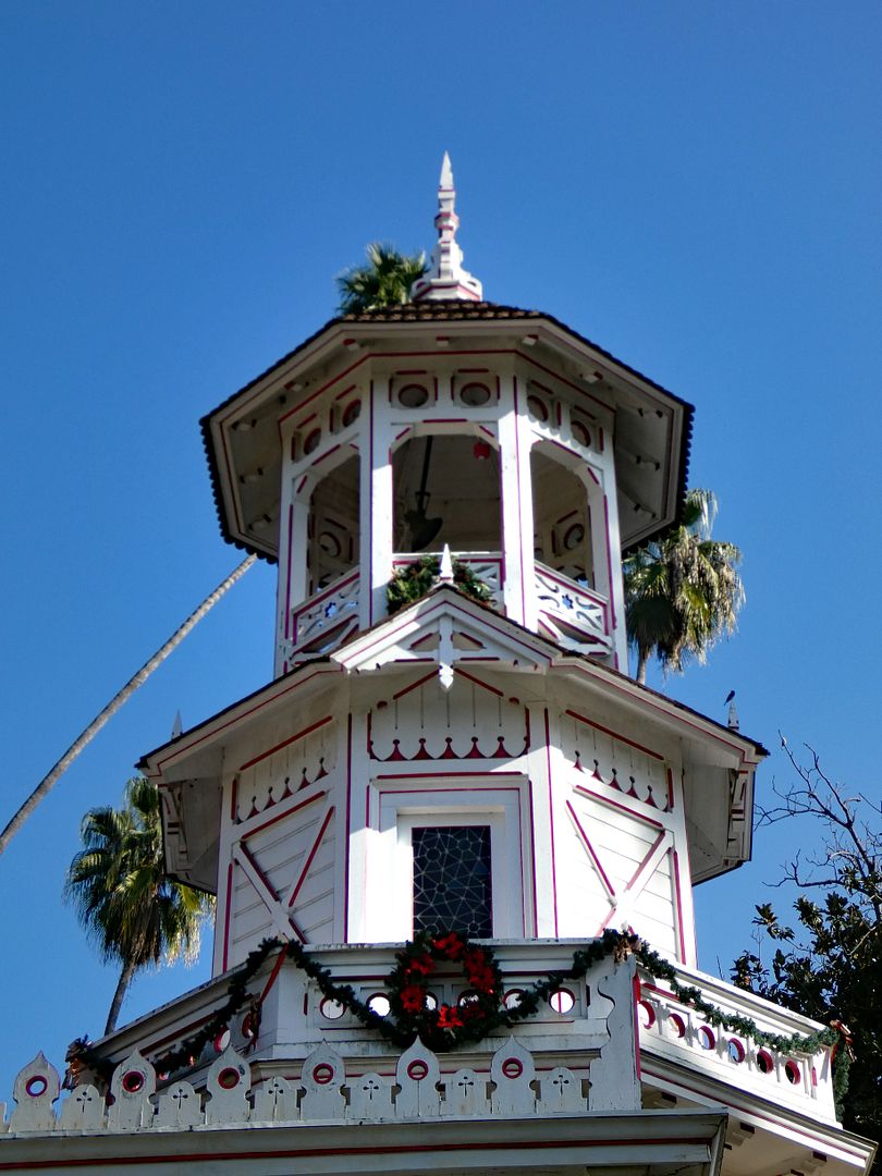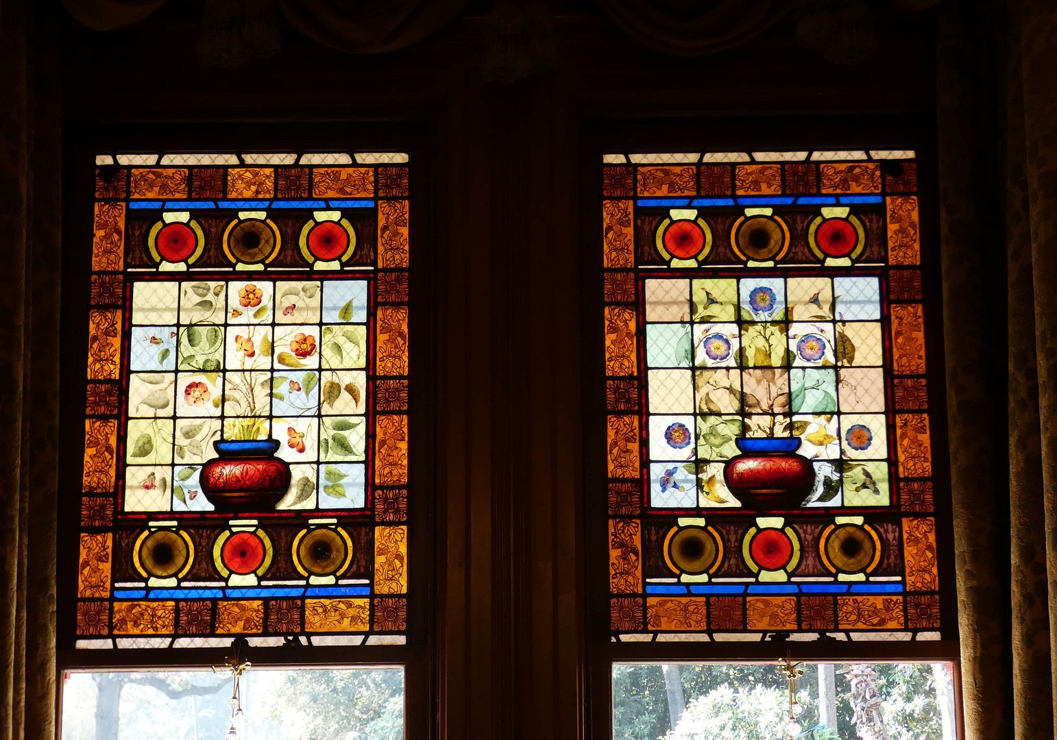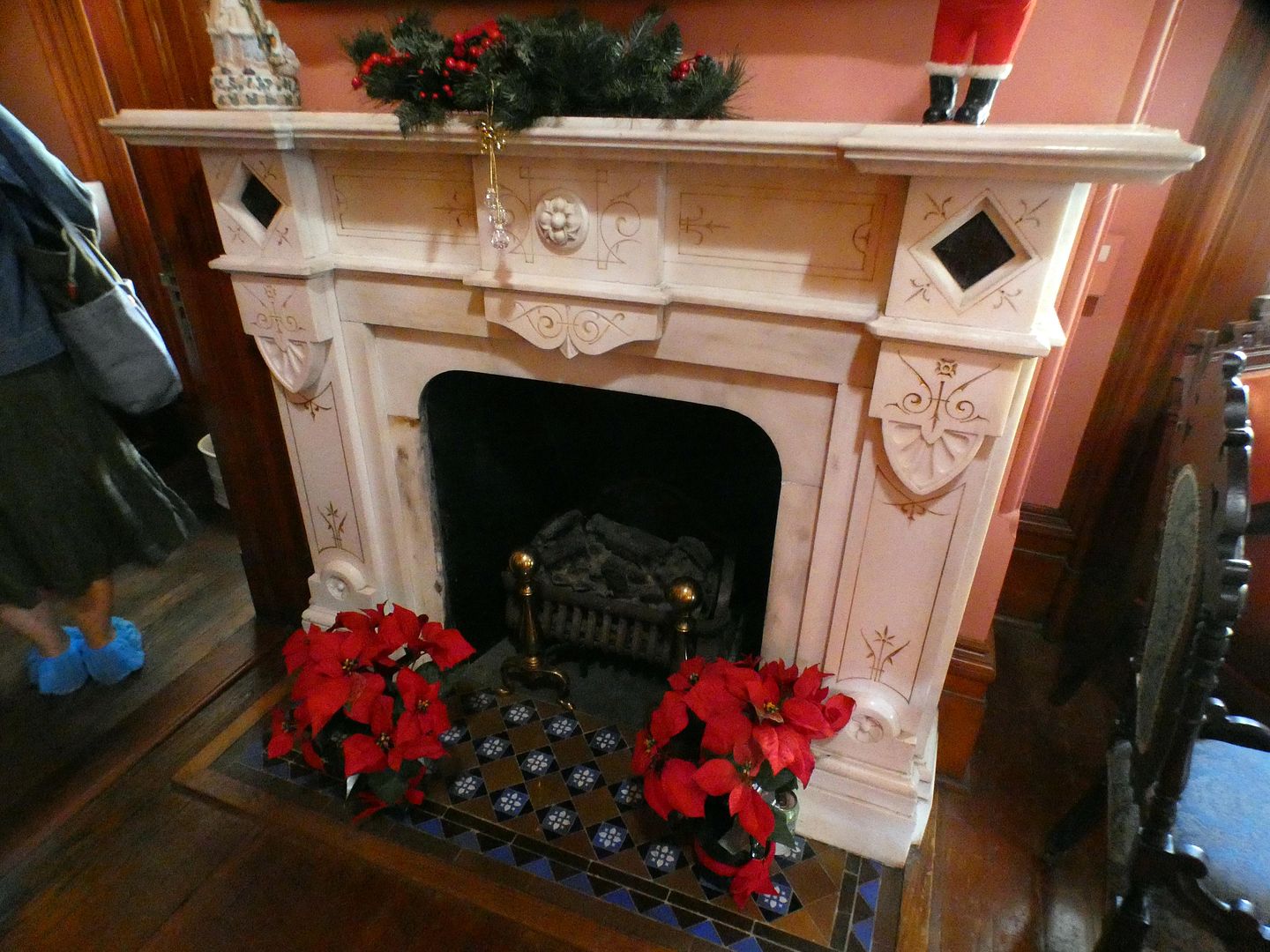 A docent greeted us at the front entrance, whose canopy is painted blue to mimic the sky and whose mirrored wall helped guests shake off the dust of their rugged trip to the Victorian dwelling.