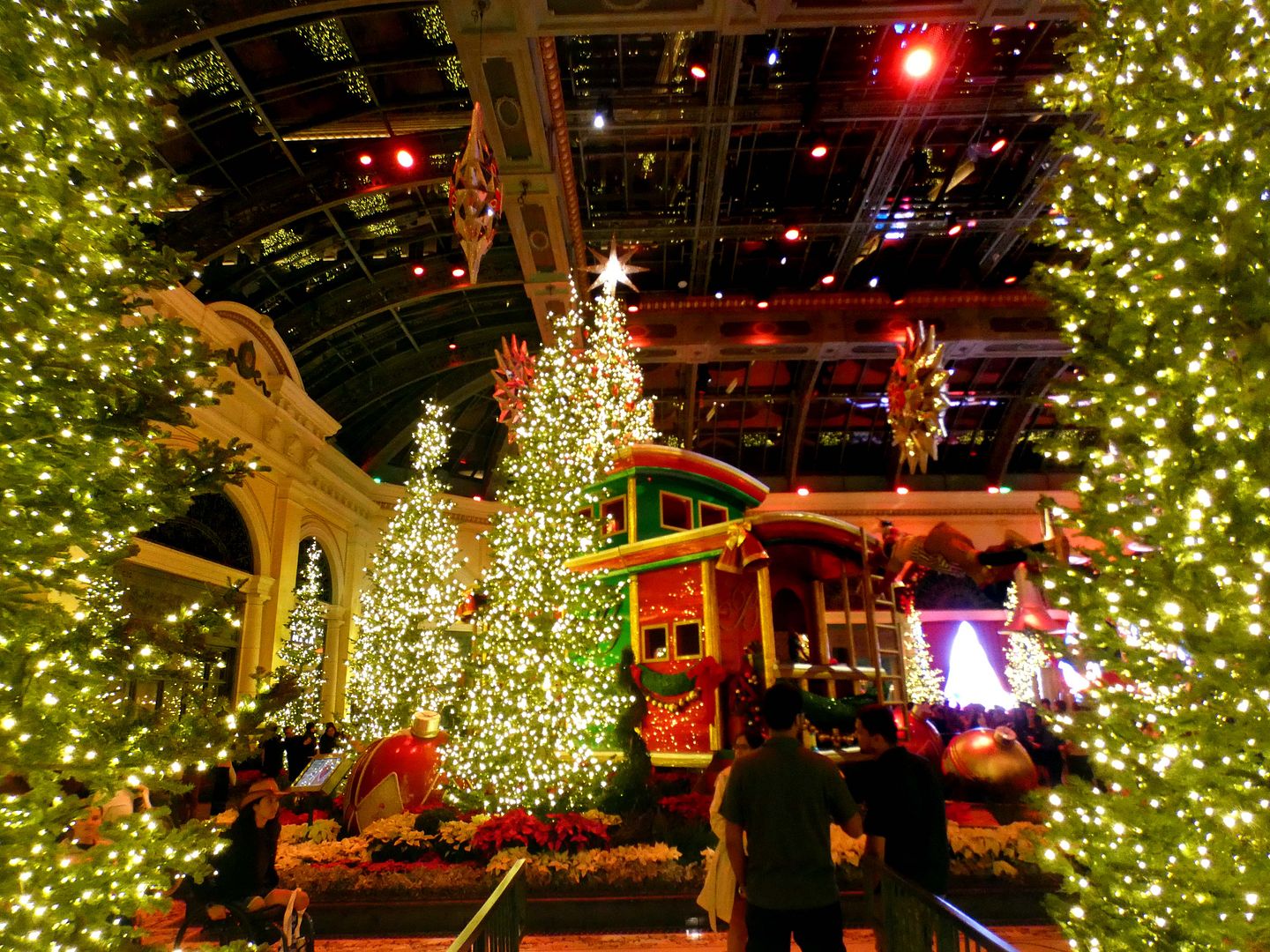 And if there's any seasonal display at the Bellagio that you want to see at night, it's the one with twinkling lights on holiday trees...