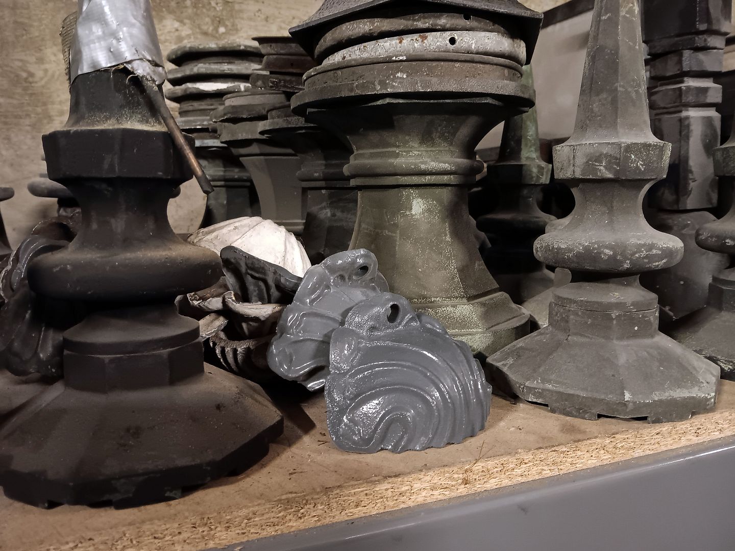 The clock tower functions as a bit of a boneyard for defunct and derelict grillwork of brass and iron...