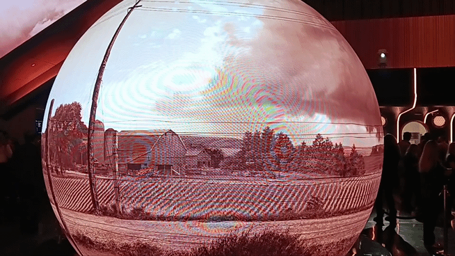 A "mini" Sphere screens scenes from the movie (like Miss Gulch riding her bicycle) on a loop...
