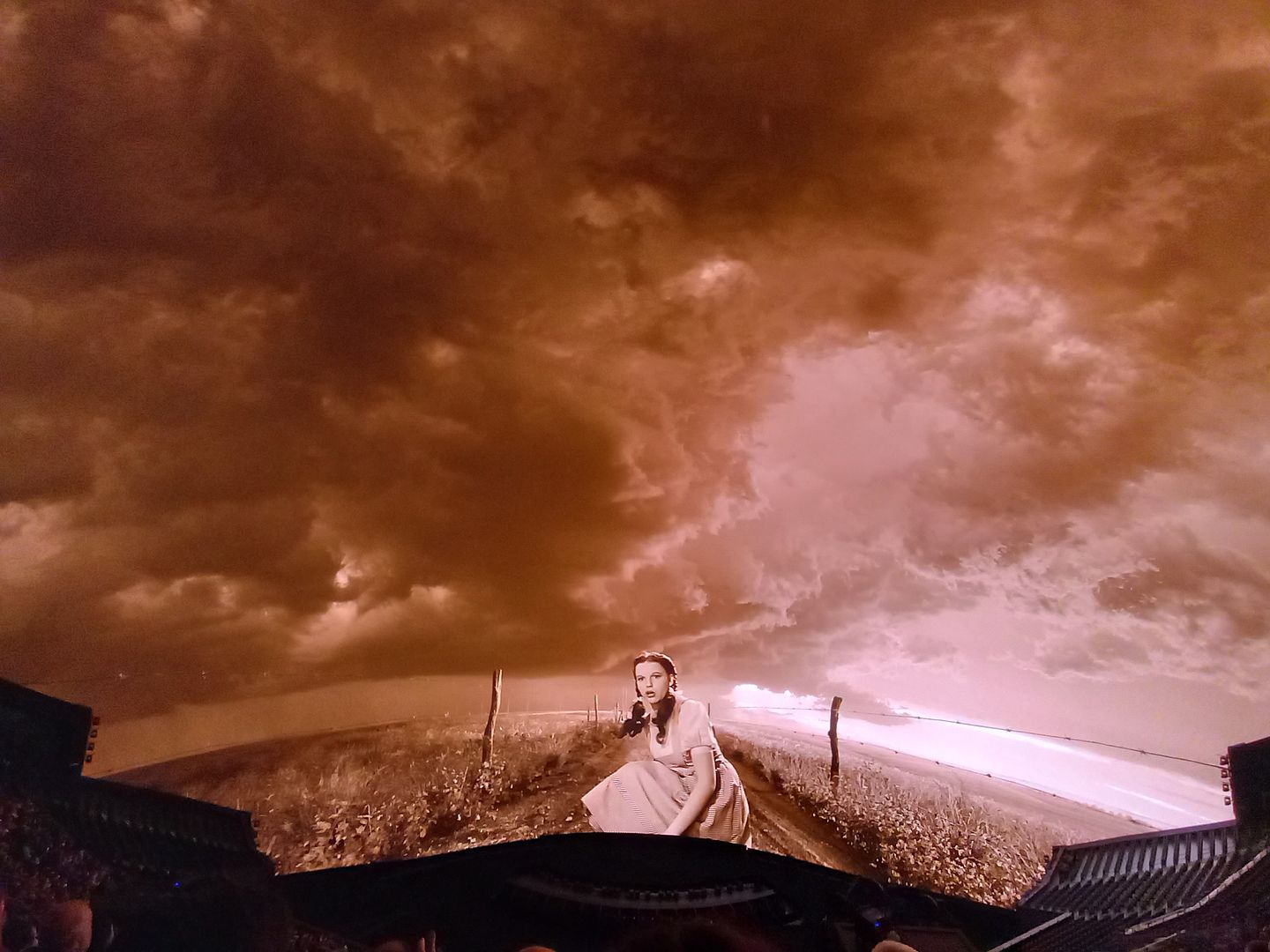 One of the draws to seeing The Wizard of Oz at the Sphere is the use of 4D effects. During the tornado scene—which was truly thrilling—fans blew gusts of wind and tissue paper leaves into the audience. And the on-screen visuals were both dizzying and dazzling.