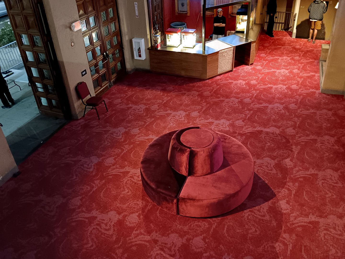 In a major turnaround, the megachurch Hillsong Church almost moved in around 2016—but that deal fell through. And the current art show will only last six weeks, through March 20, making this just a short-term revival. It would take a long-term tenant for the renovation to be completed (and maybe for some seats to go back into the auditorium).