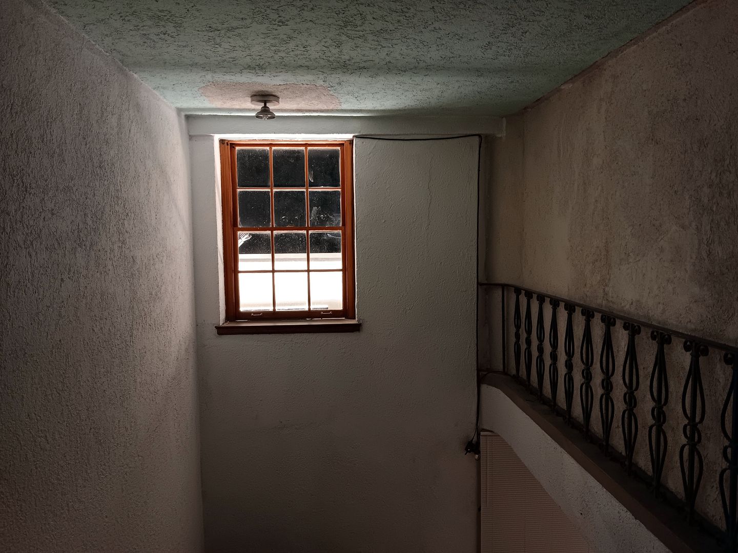 ...while some light from the façade filtered into the staircase leading to the second floor.