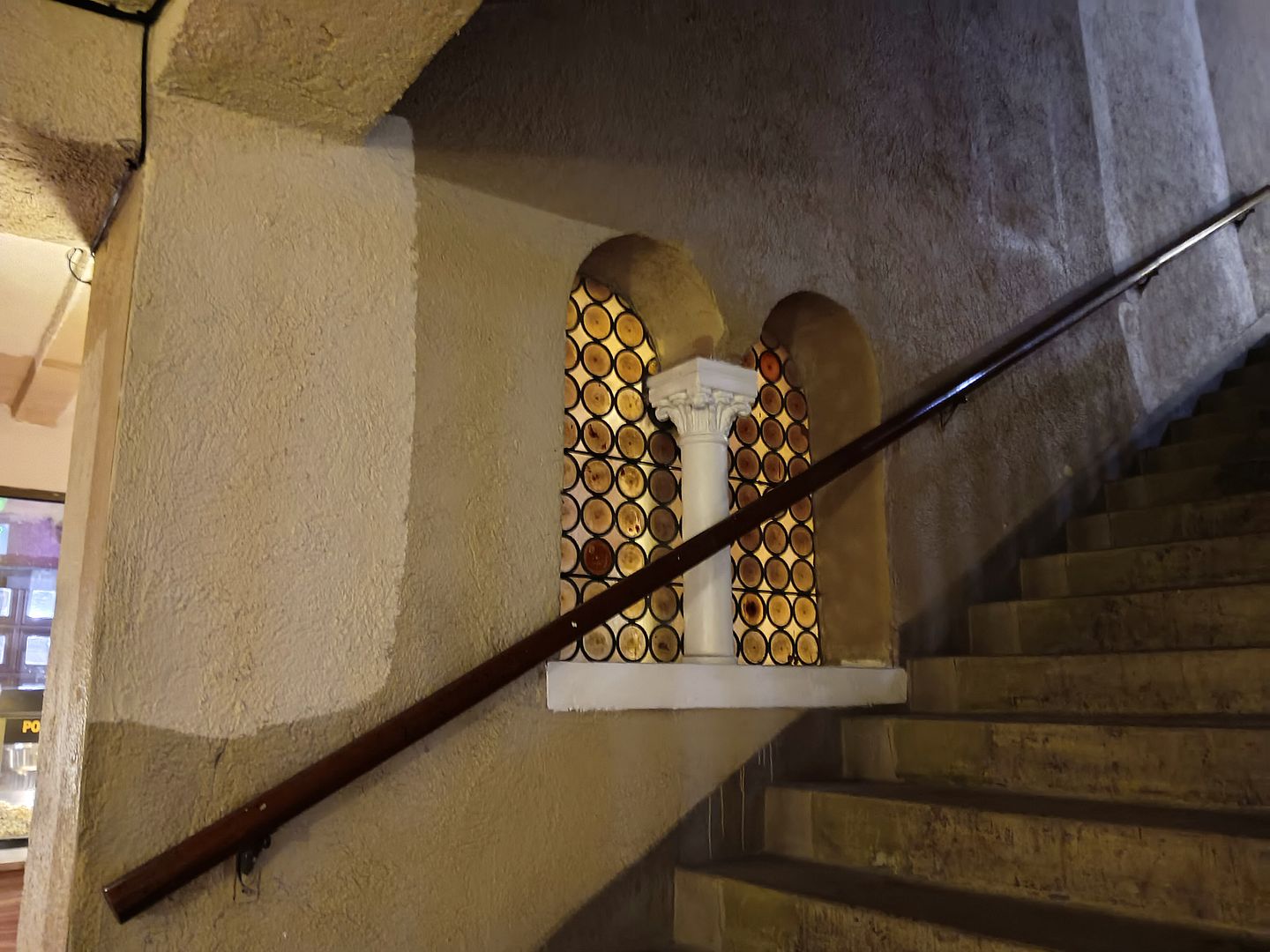 And the ornamented ceilings? Those are original—and they're actually concrete, hand-painted to look like wood.