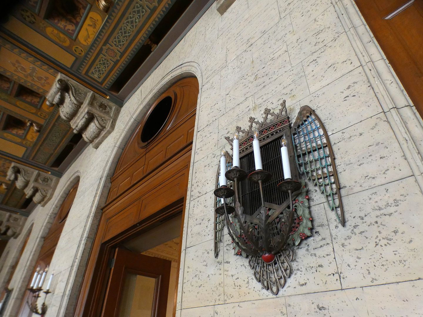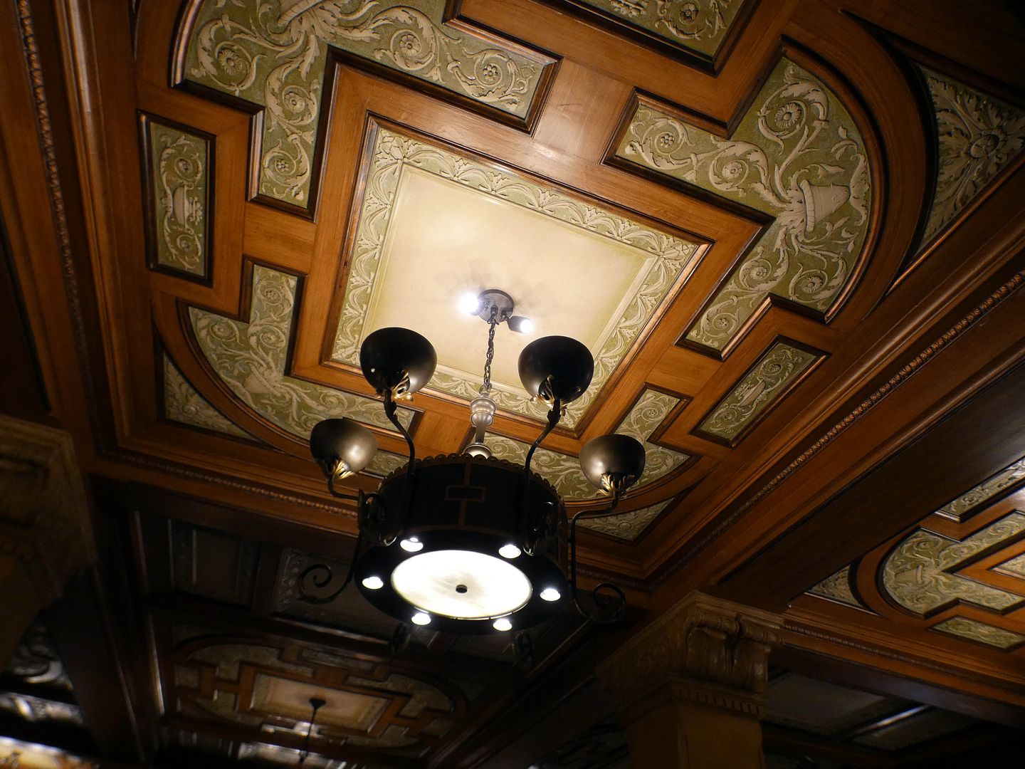 The beam ceilings, however, were painted by Giovanni "John" Battista Smeraldi, a Vatican-trained Italian artist probably best-known for his work on the ceiling of New York's Grand Central Terminal.