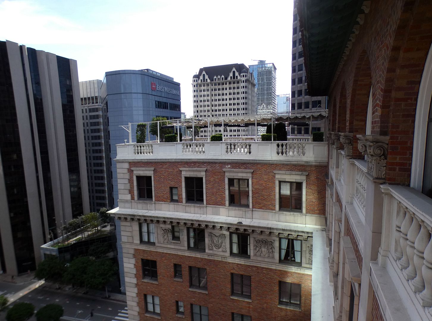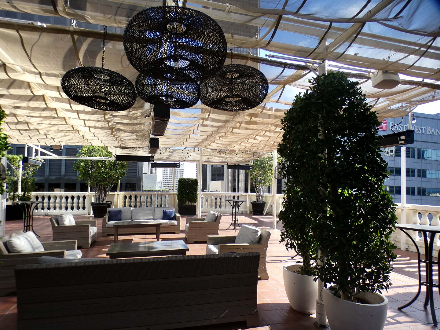 From Skybar, you can see that there's another rooftop patio at the other end of the building, with an exterior connection to the middle of the building's horseshoe shape. (That's that triangular bridge that's visible from the street.)