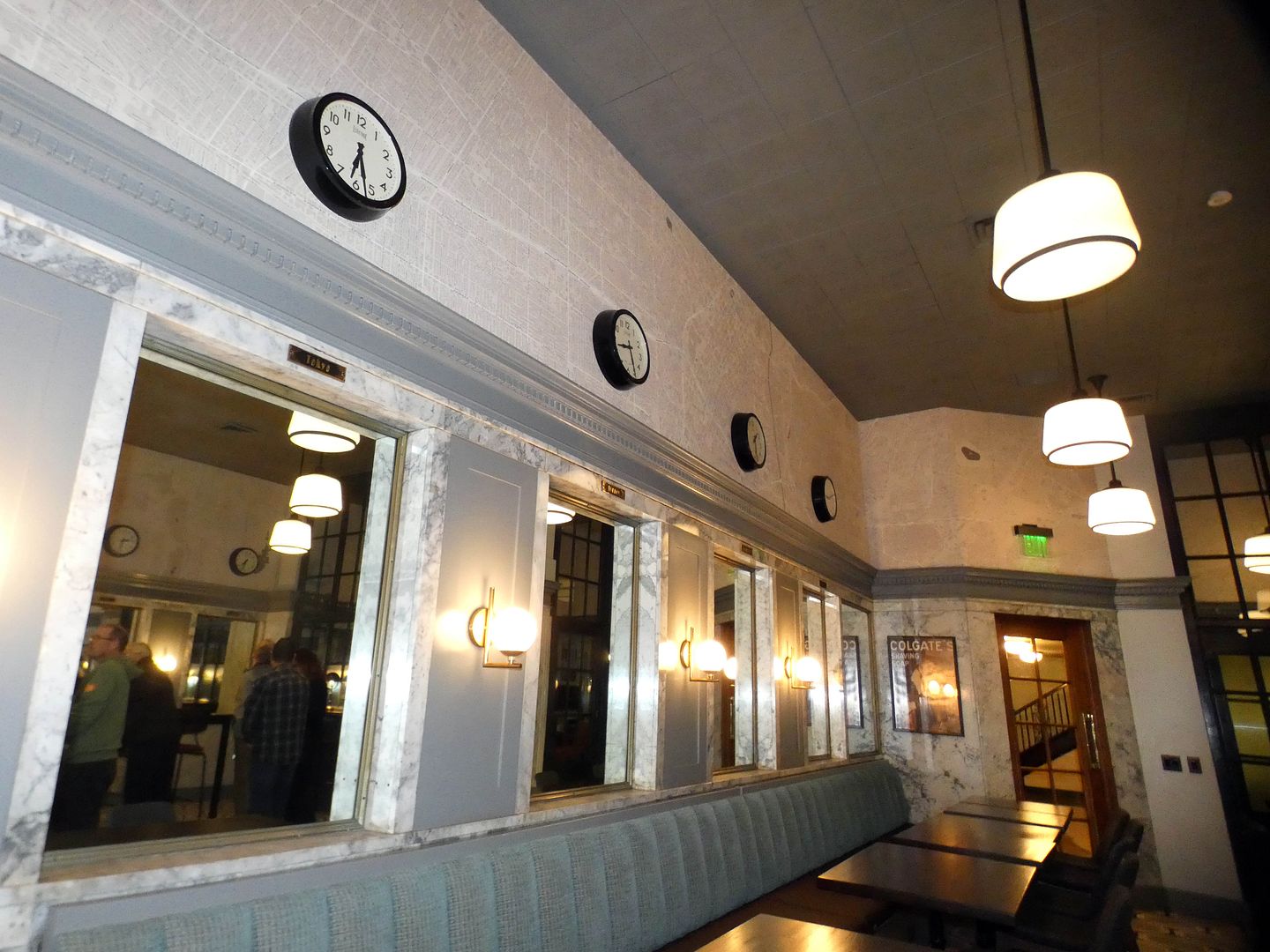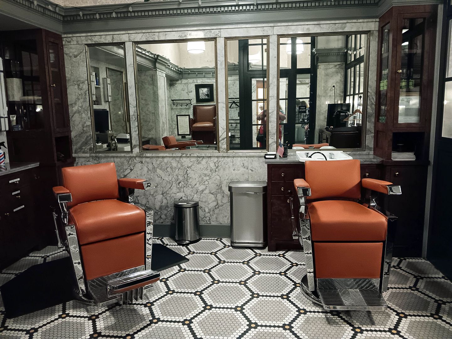 ...retaining all its original marble-framed mirrors at each of the barbering stations.
