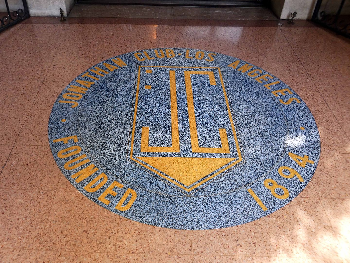 In fact, most people these days enter from the valet drop-off area in the newer parking garage—and not through the front door facing Figueroa, where you can stand on the terrazzo sidewalk inlaid with the Jonathan Club insignia.