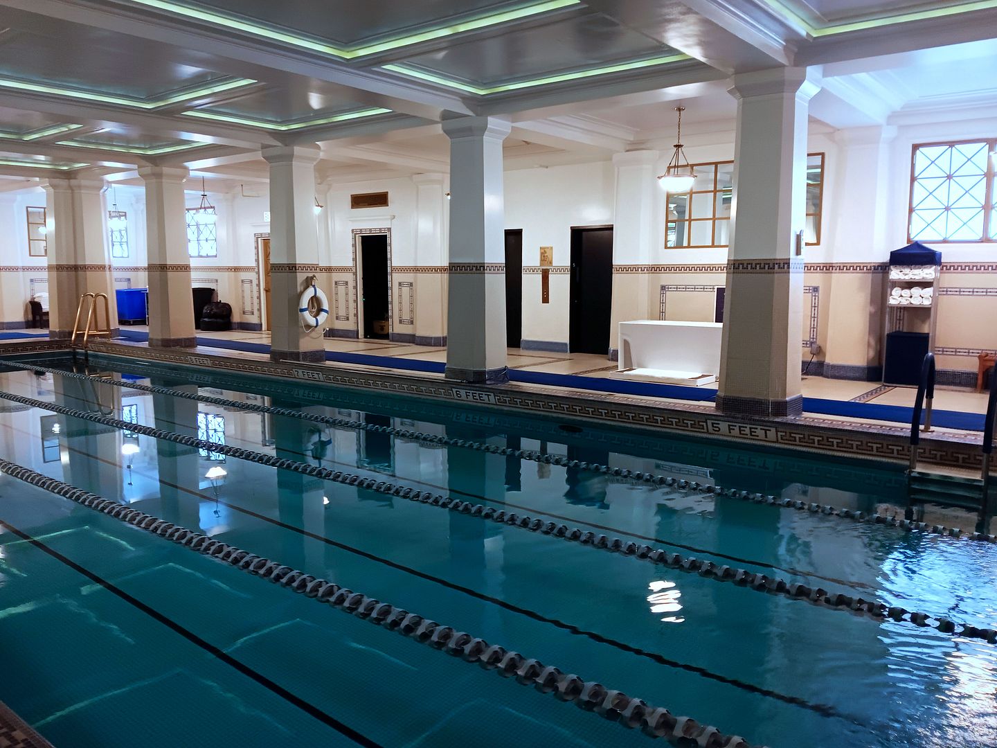 ...and a swimming pool (a.k.a. natatorium), recently restored by Tim Barber Architects to bring in more natural light and replace some 1960s-era wall tiles that didn't match with ones that go with the original.
