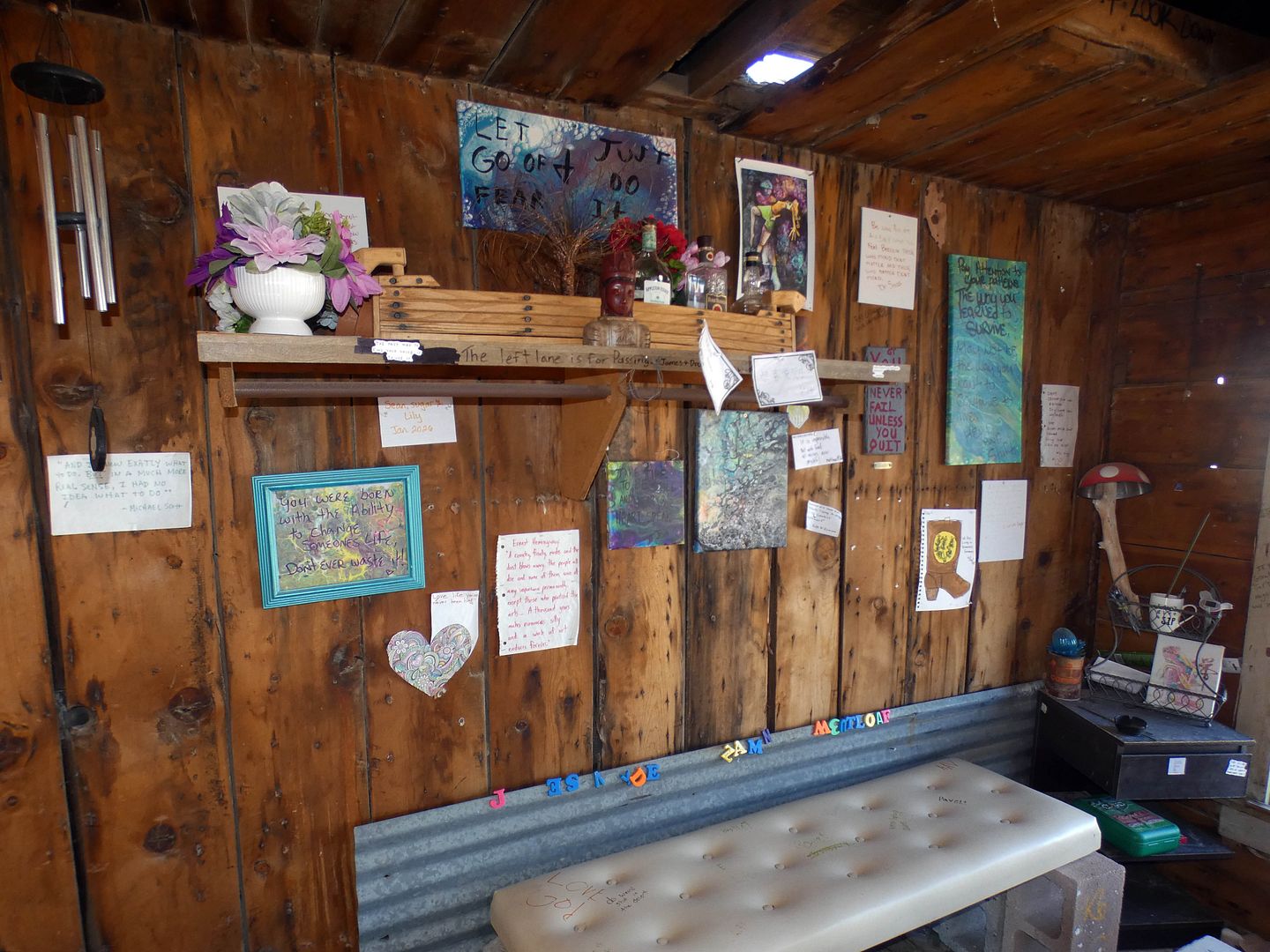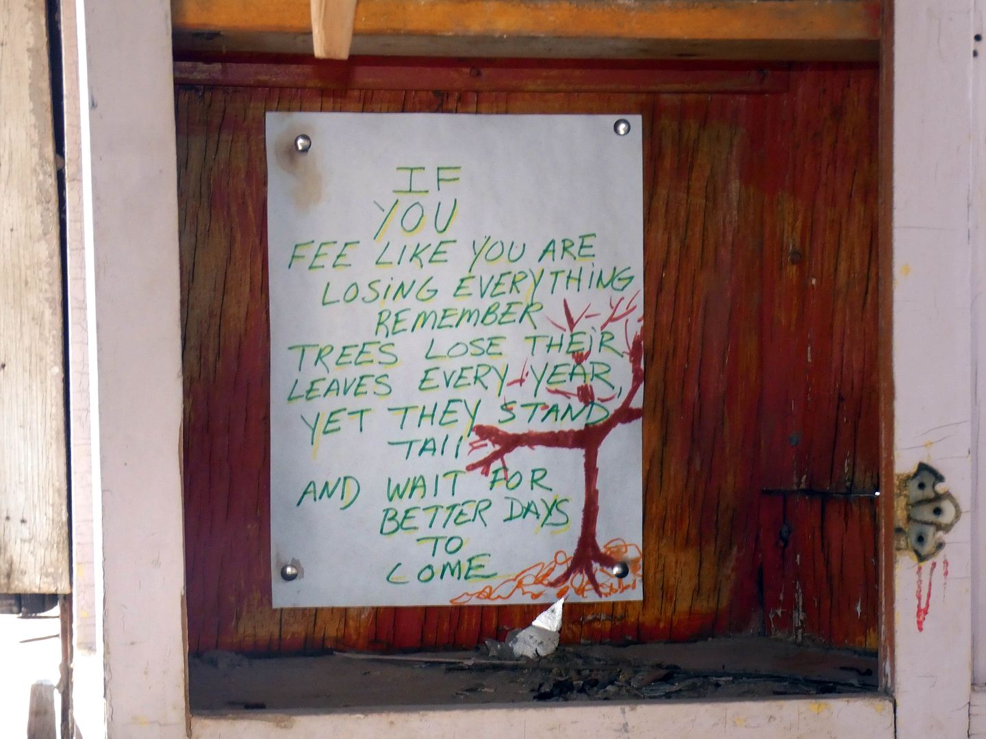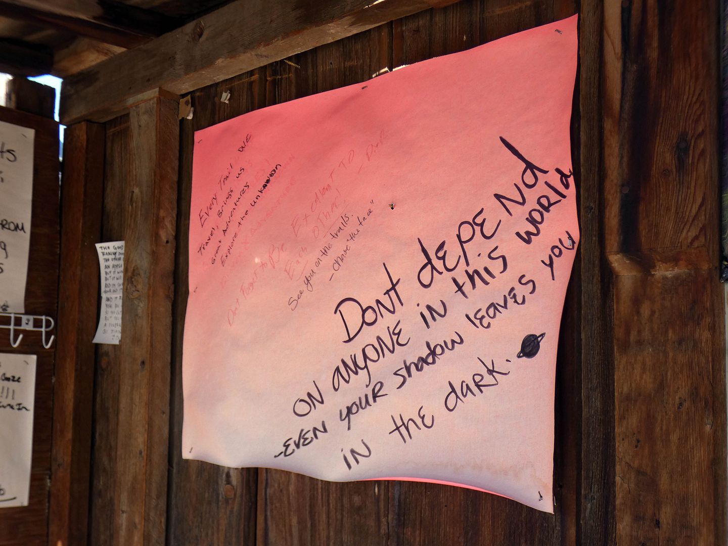 "Please leave a quote to share with the world," reads a makeshift display that offers blank slips of paper to visitors who want to leave their mark.