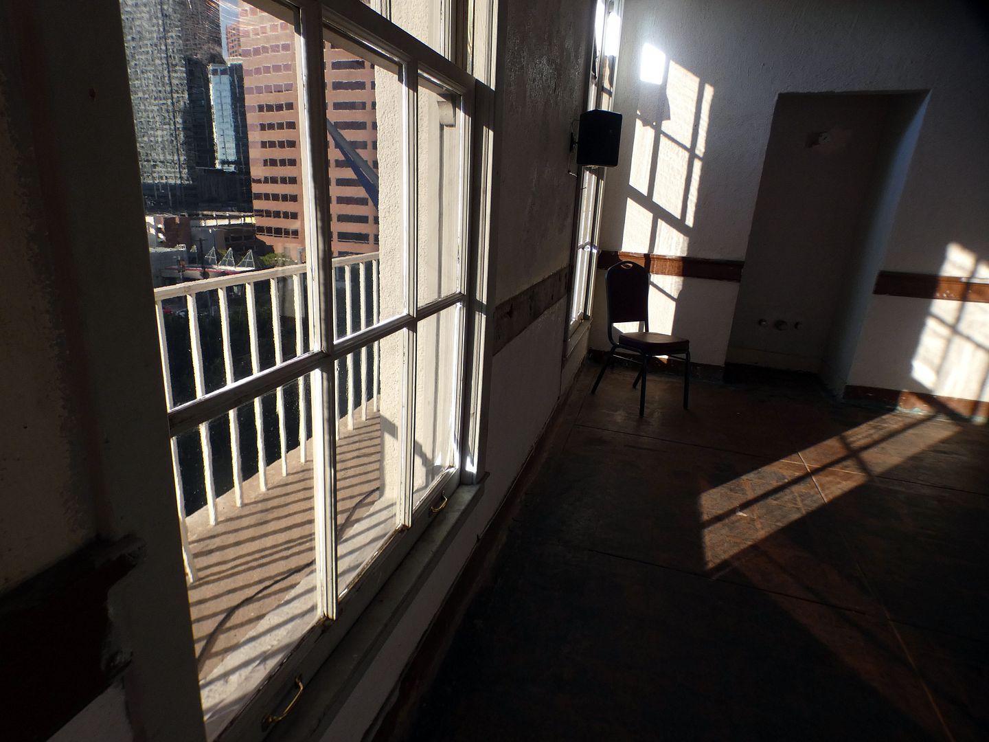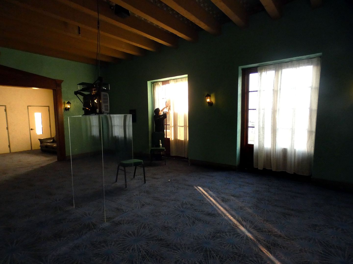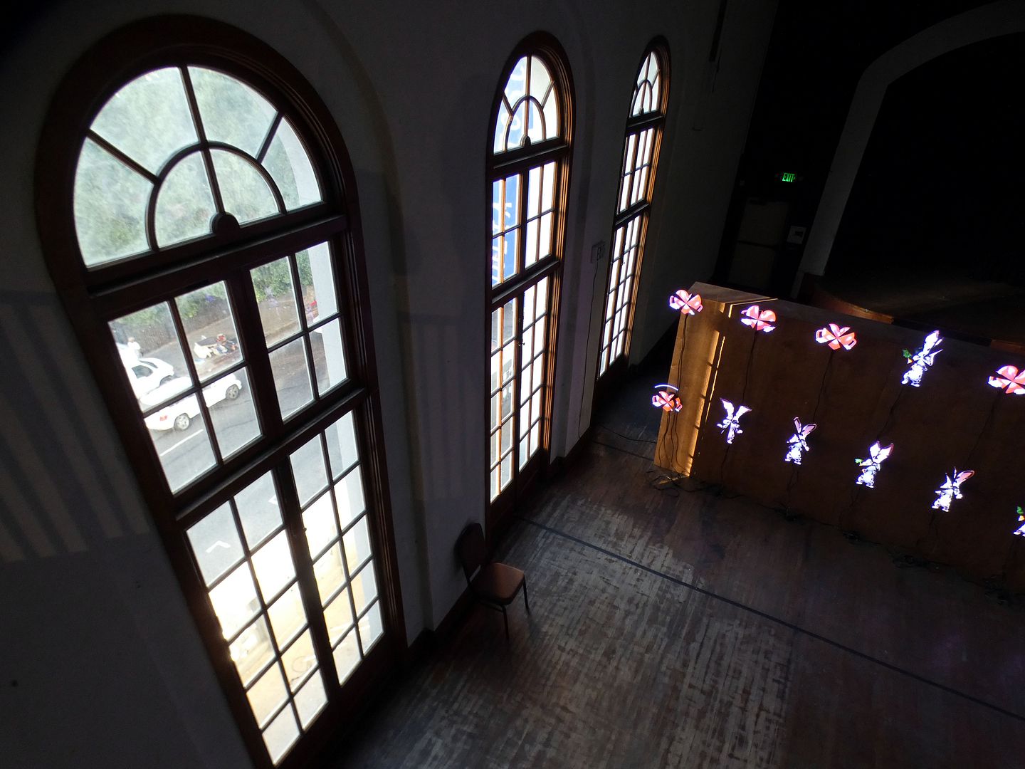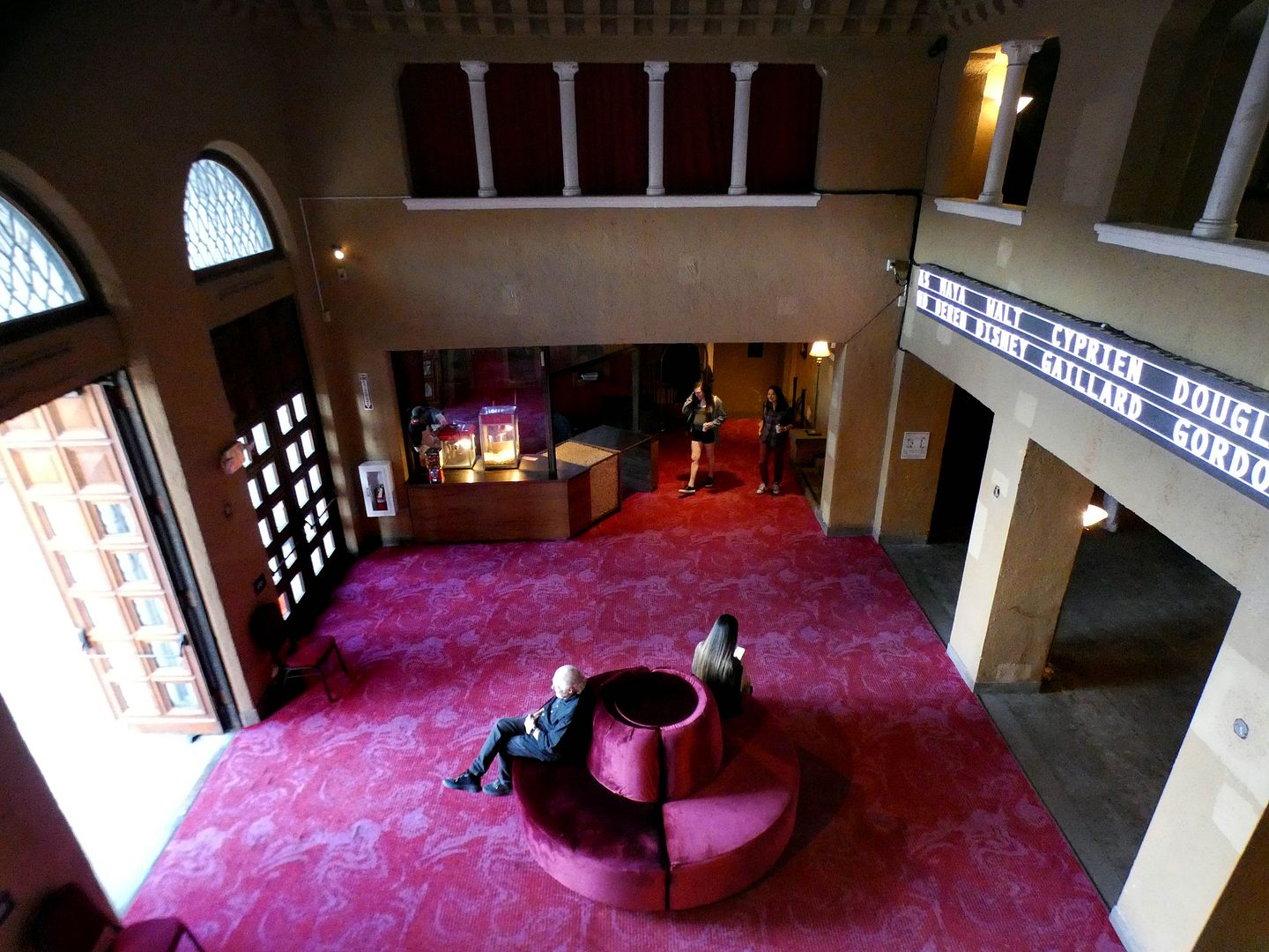 The smaller theater on the third floor was a bit more illuminated, with its big bay windows that face Figueroa Street, but security personnel kept me from slipping behind the LED light panels to get closer to the little stage behind it.