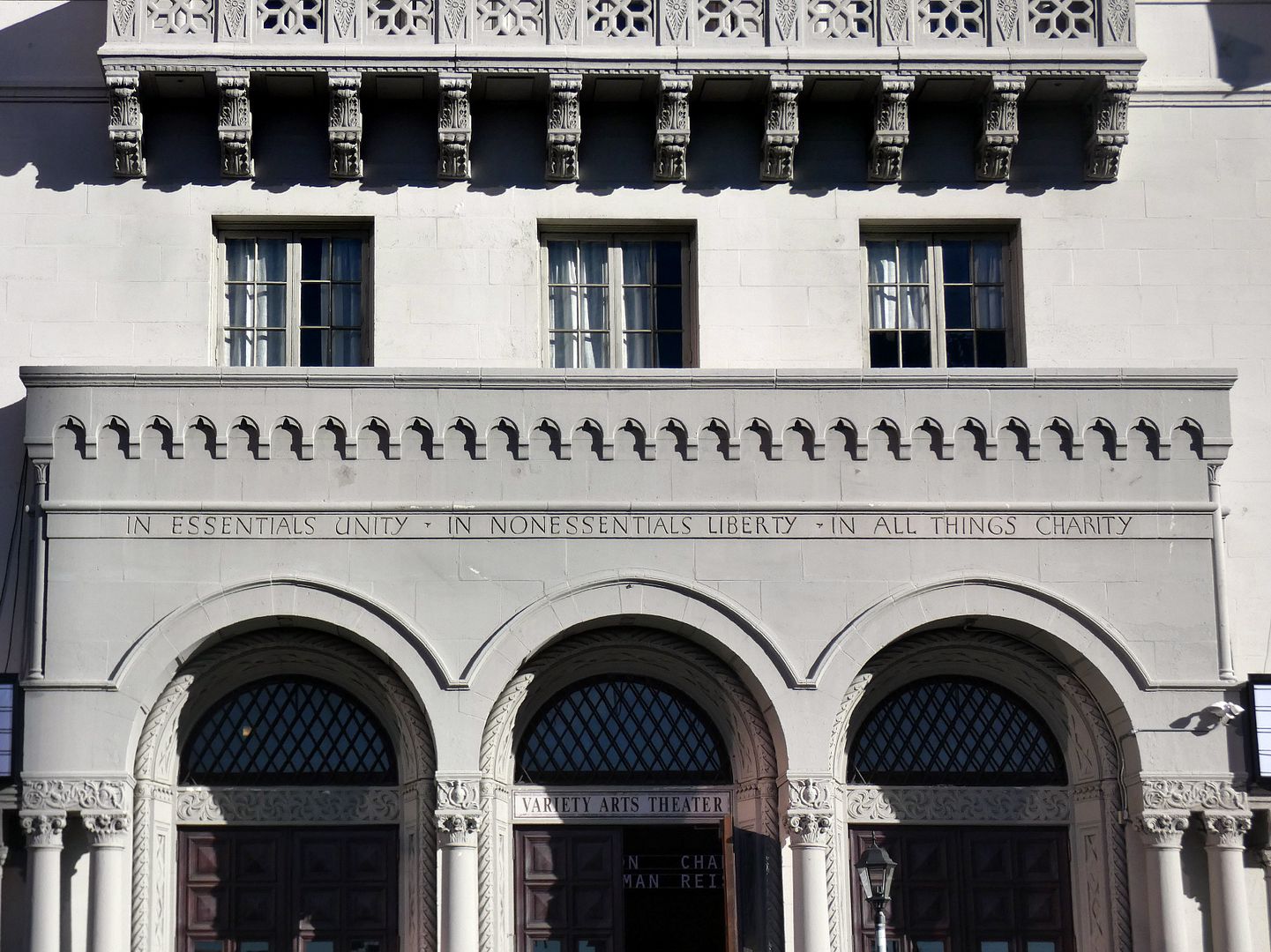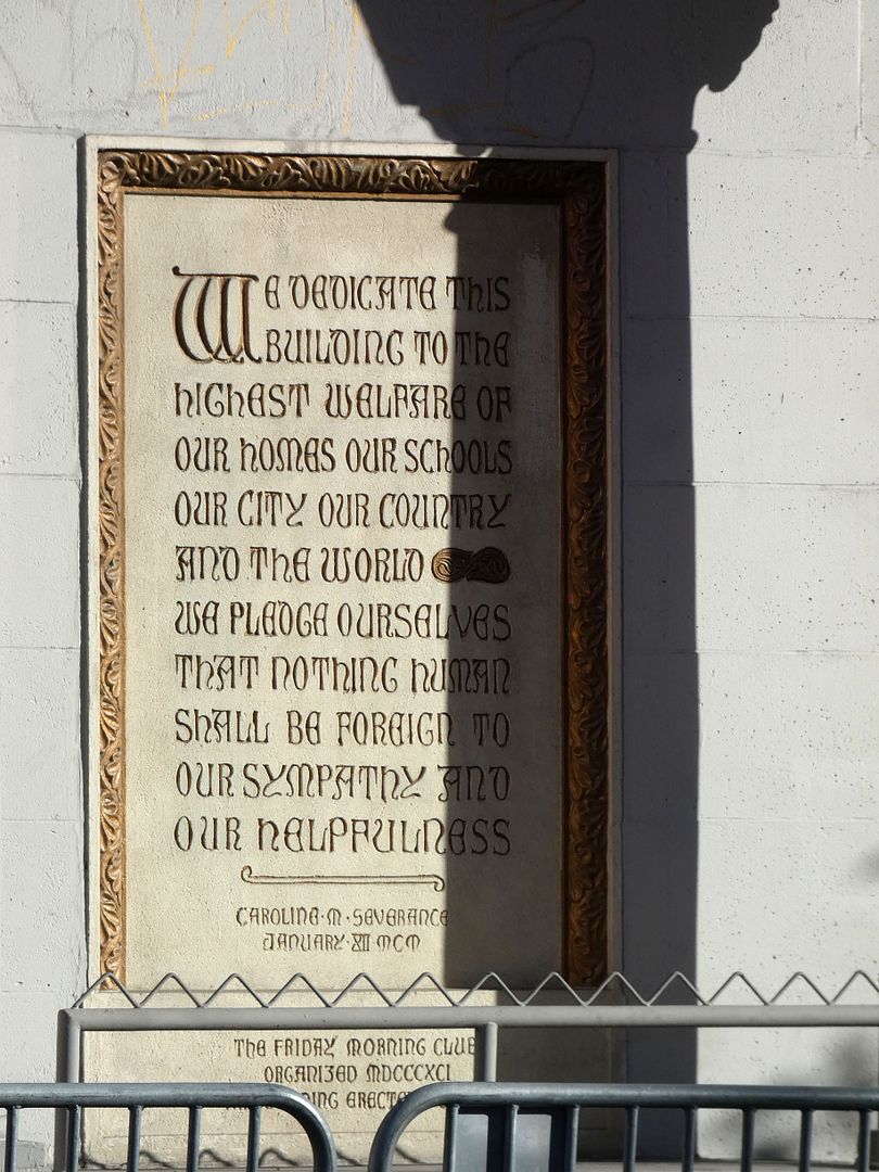I'm rarely in the neighborhood outside of nighttime visits to LA Live or the Grammy Museum anyway, so I was happy to see the original inscription above the front entrance to the former Friday Morning Club headquarters: "In Essentials Unity • In Nonessentials Liberty • In All Things Charity."