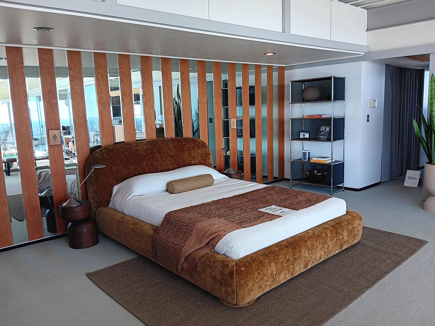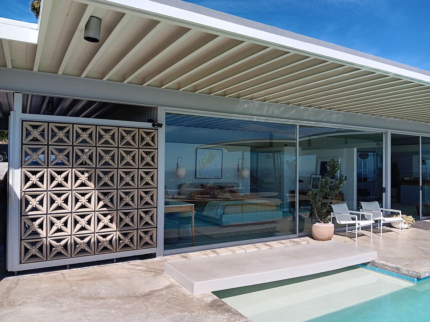 There are two main bedrooms that face the pool through enormous plate glass windows...